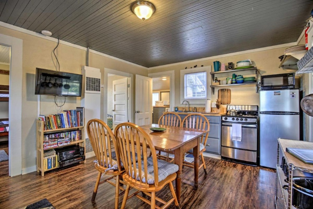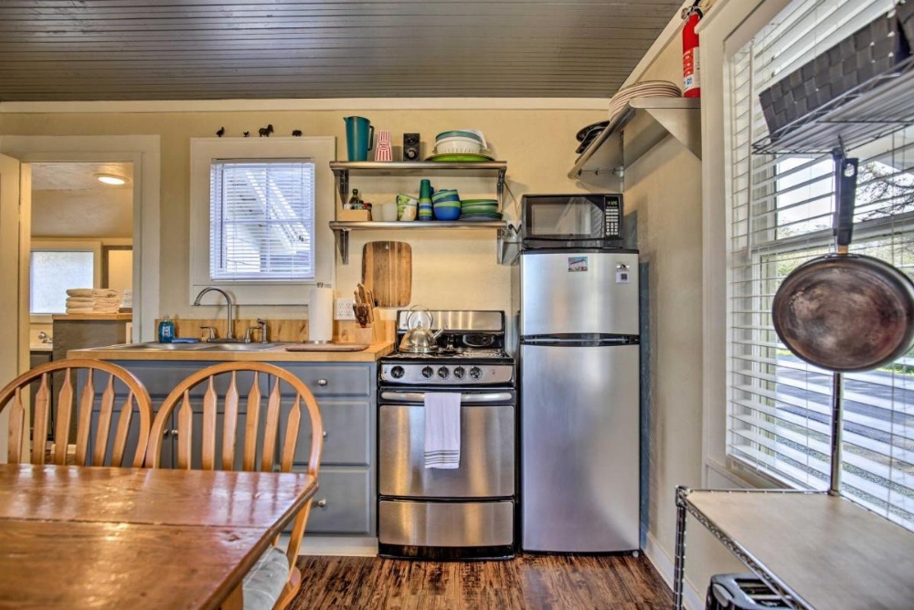 This holiday home features a kitchenware, microwave and tumble dryer.